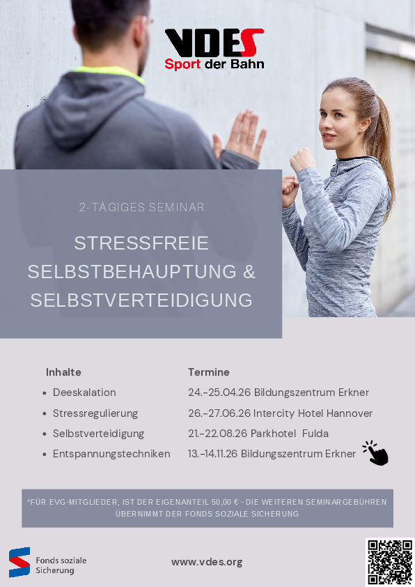 VDES und Fonds bieten die Möglichkeit über einen oder ein sich bundesweit für Seminare zur Selbstbehauptung & Selbstverteidigung anzumelden.